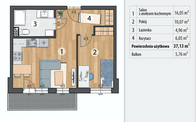 15Lokal mieszkalny położony na I Piętrze składający się z Przedpokoju, Kuchni, Łazienki, 2 Pokoi, Balkonu i ...